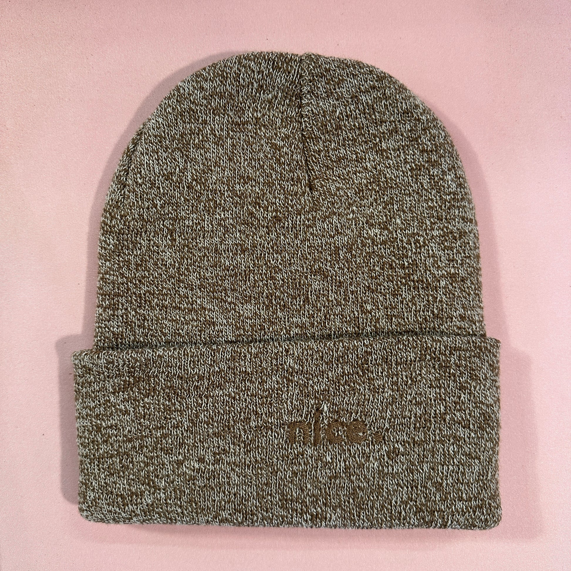 Die "Nice."-Beanie in Braun-Weiß meliert