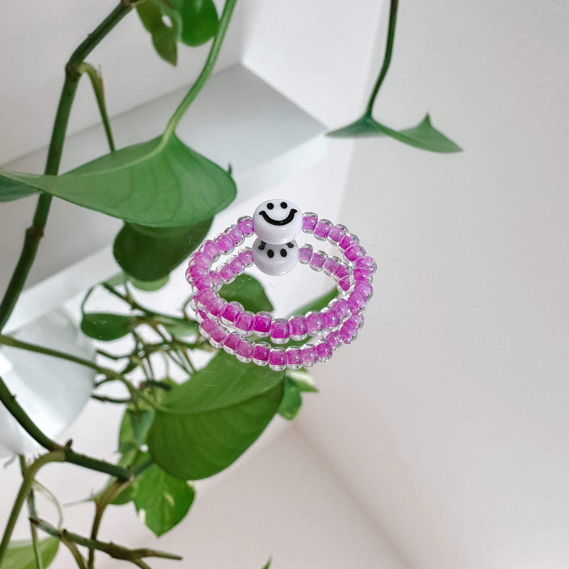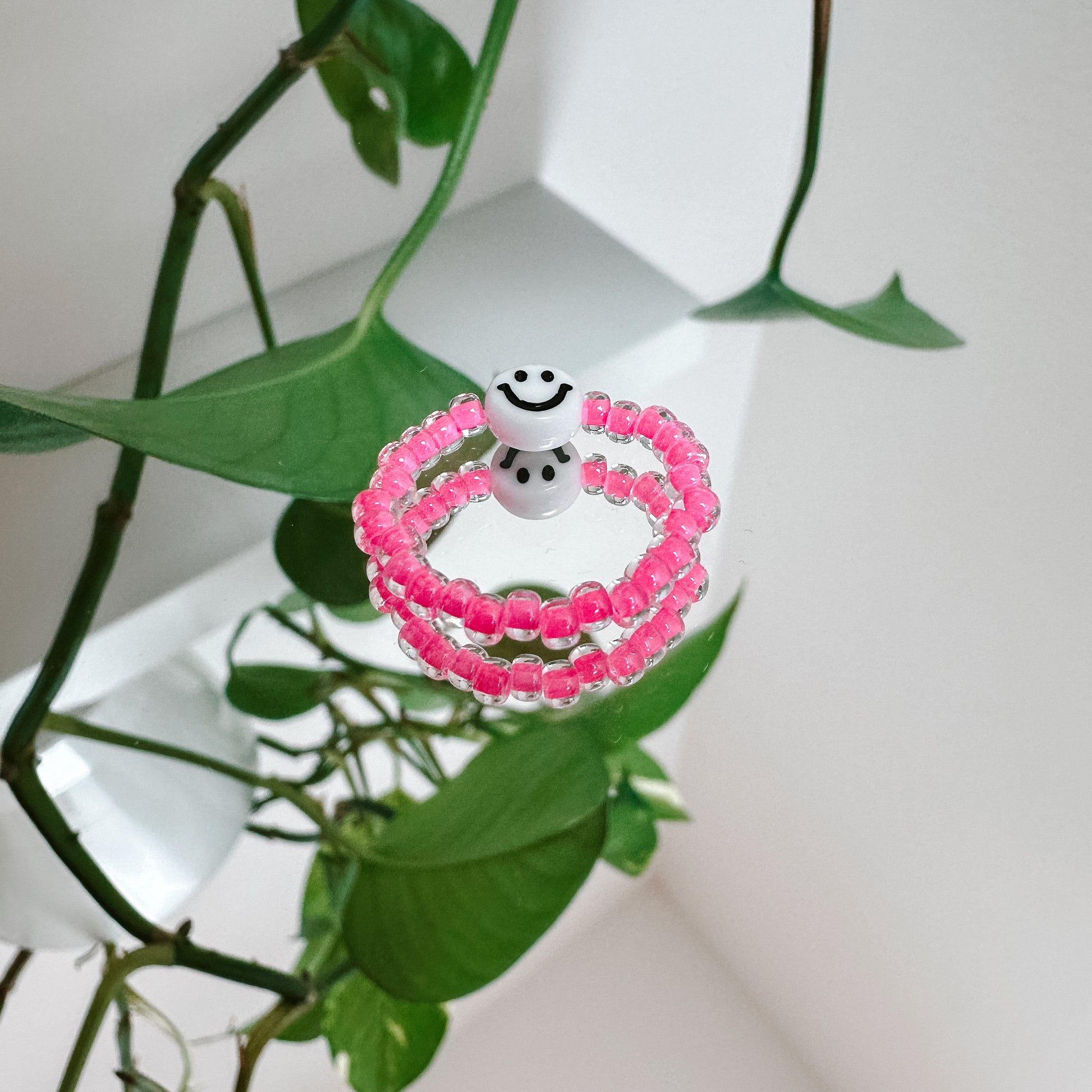 Lass deinen Ring für dich sprechen! Unser Perlenring "Riley" ist das ultimative Gute-Laune-Accessoire. Dieser handgefertigte Ring besteht aus leuchtenden, farbigen Glasperlen und wird durch einen klaren, weißen Smiley in der Mitte akzentuiert. Die kräftige Farbe der Perlen lässt das lächelnde Motiv strahlen.
