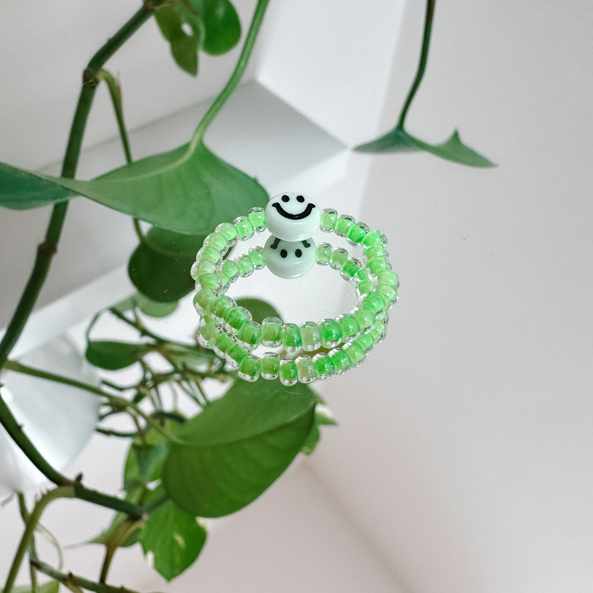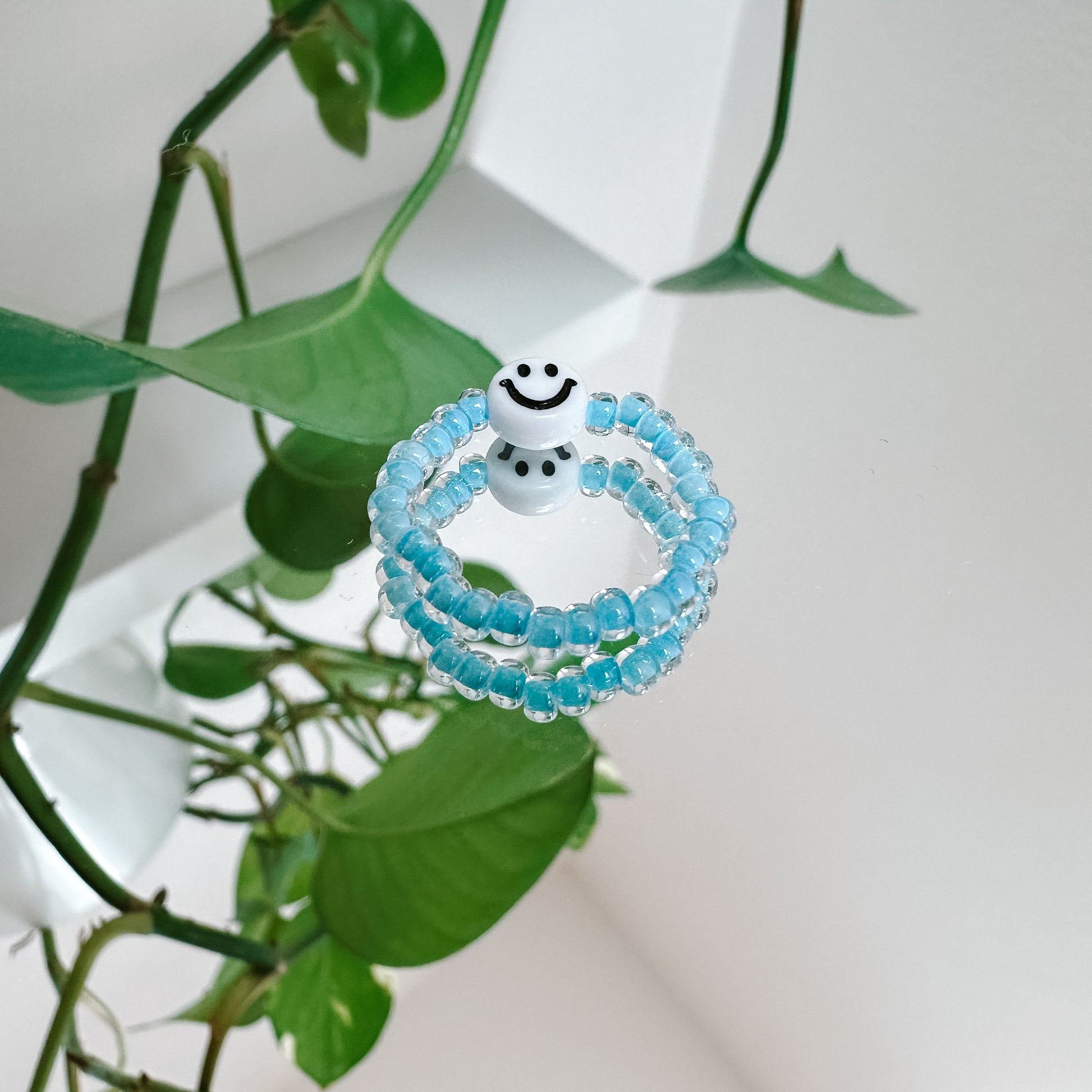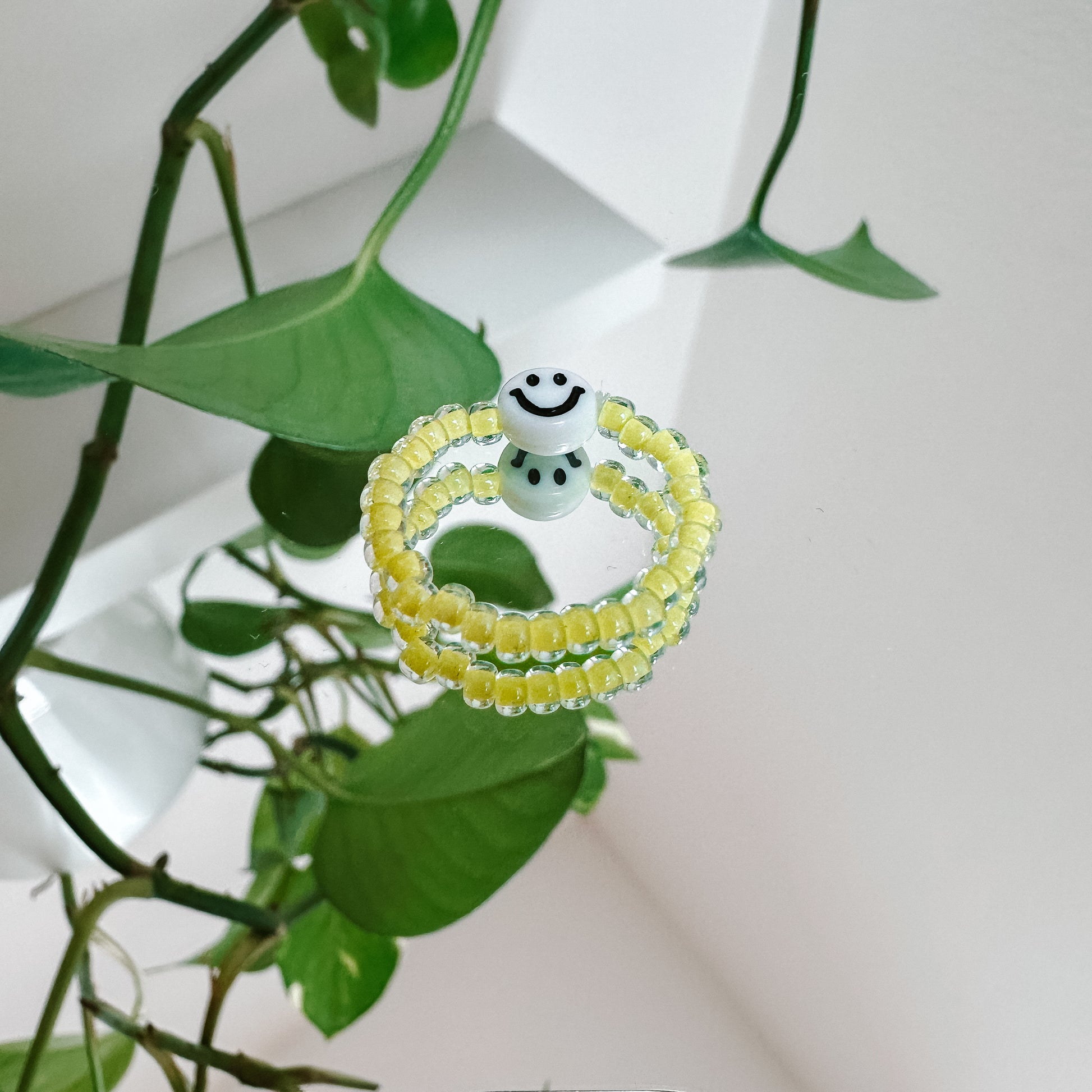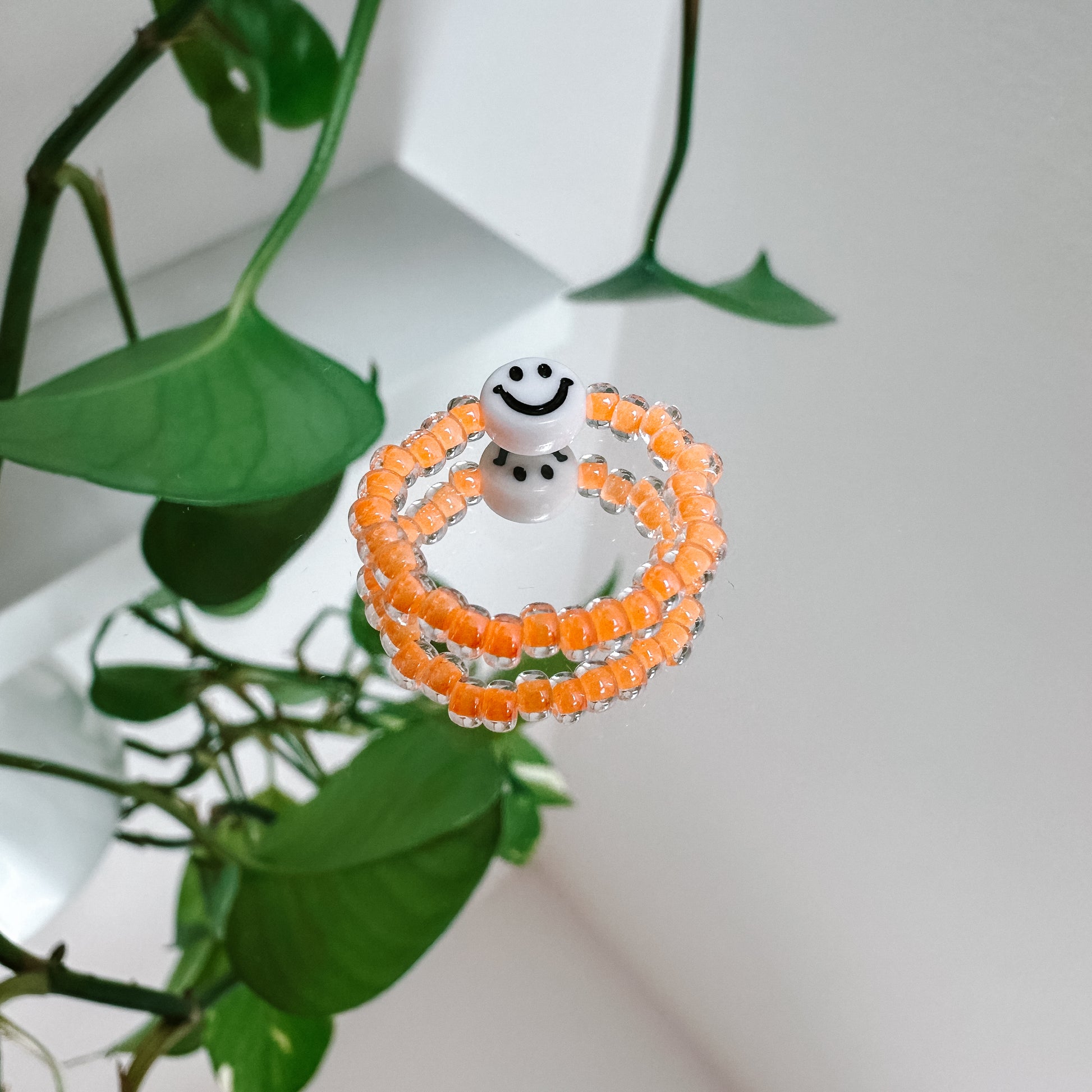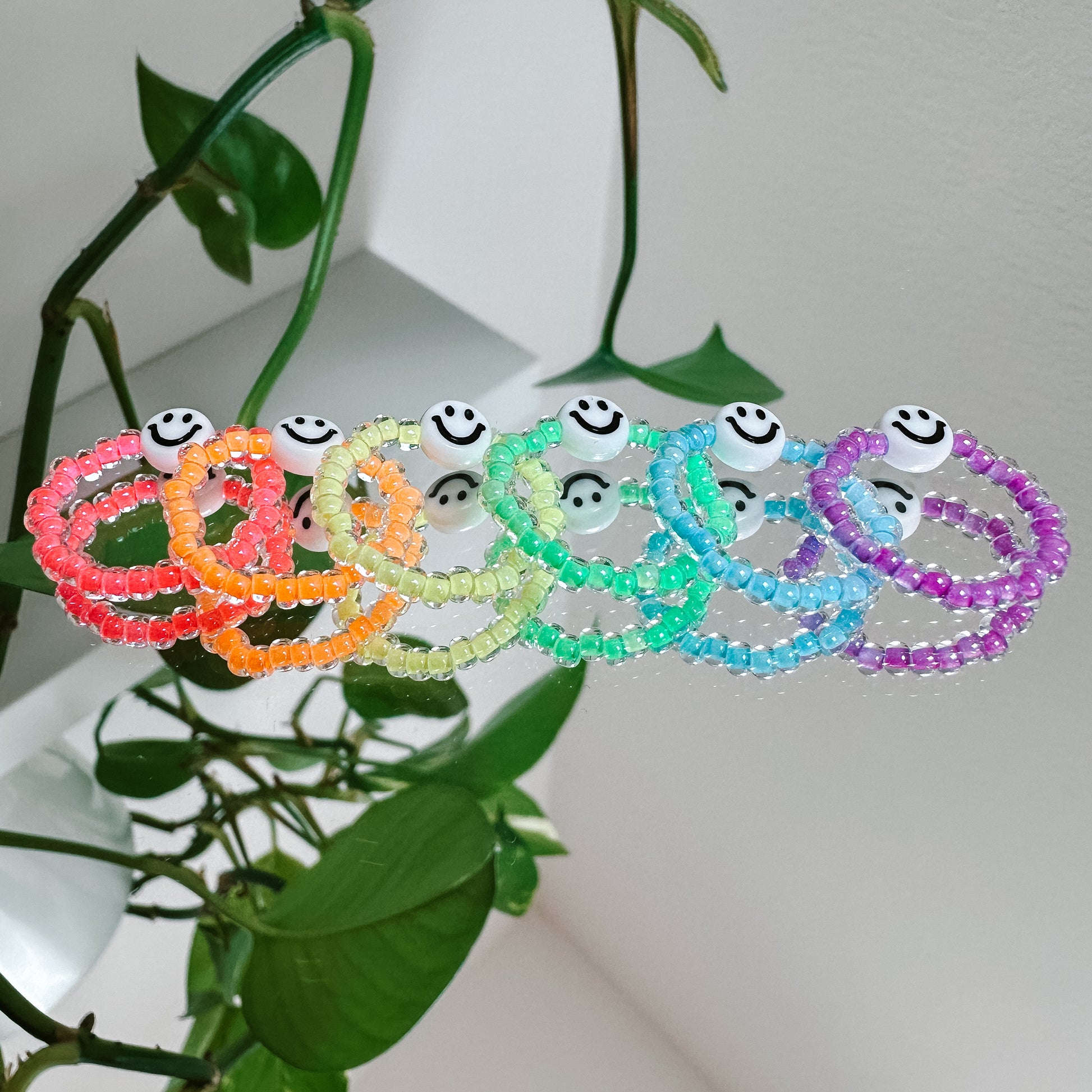 Perlenring Riley: Farbenfrohe Glasperlen mit Weißem Smiley