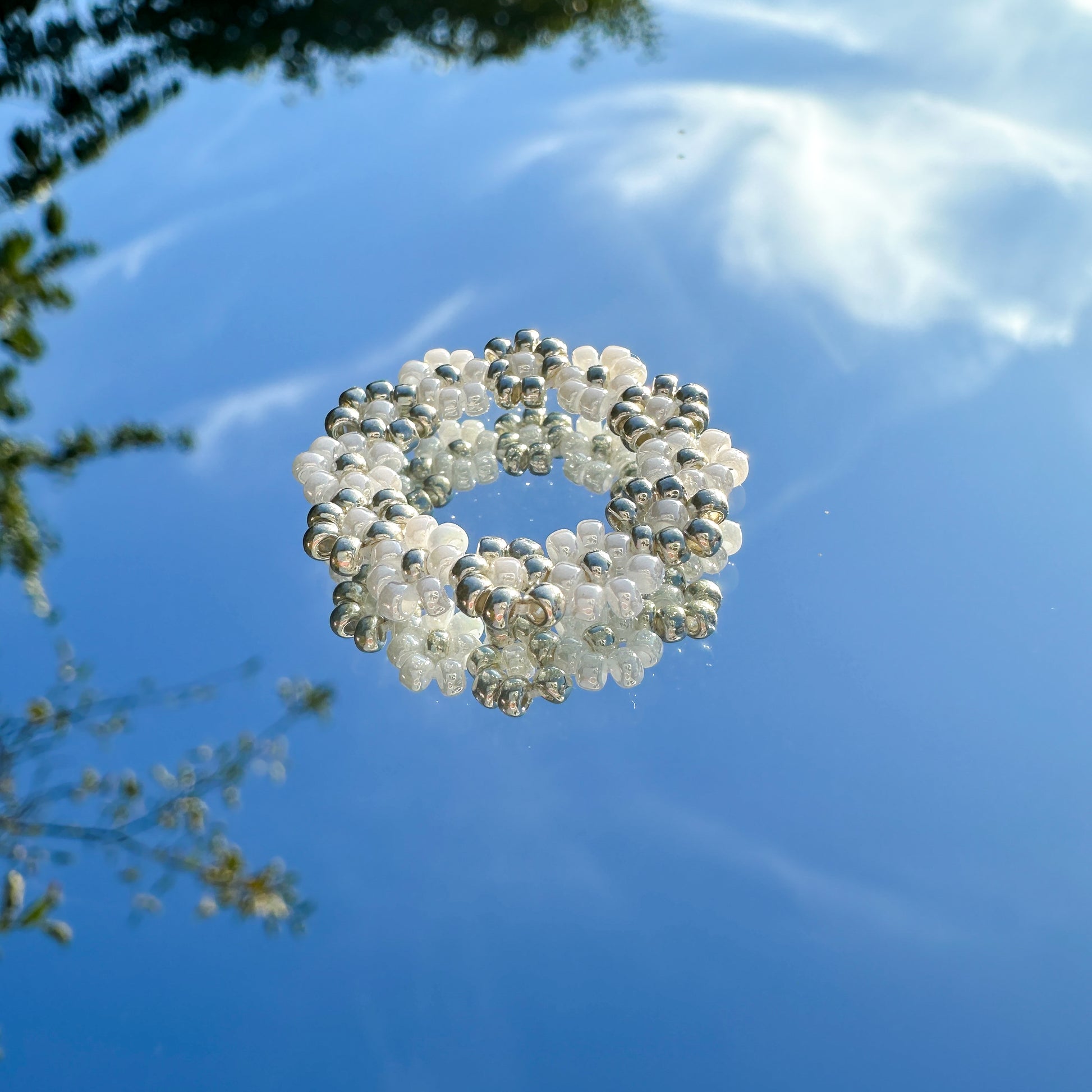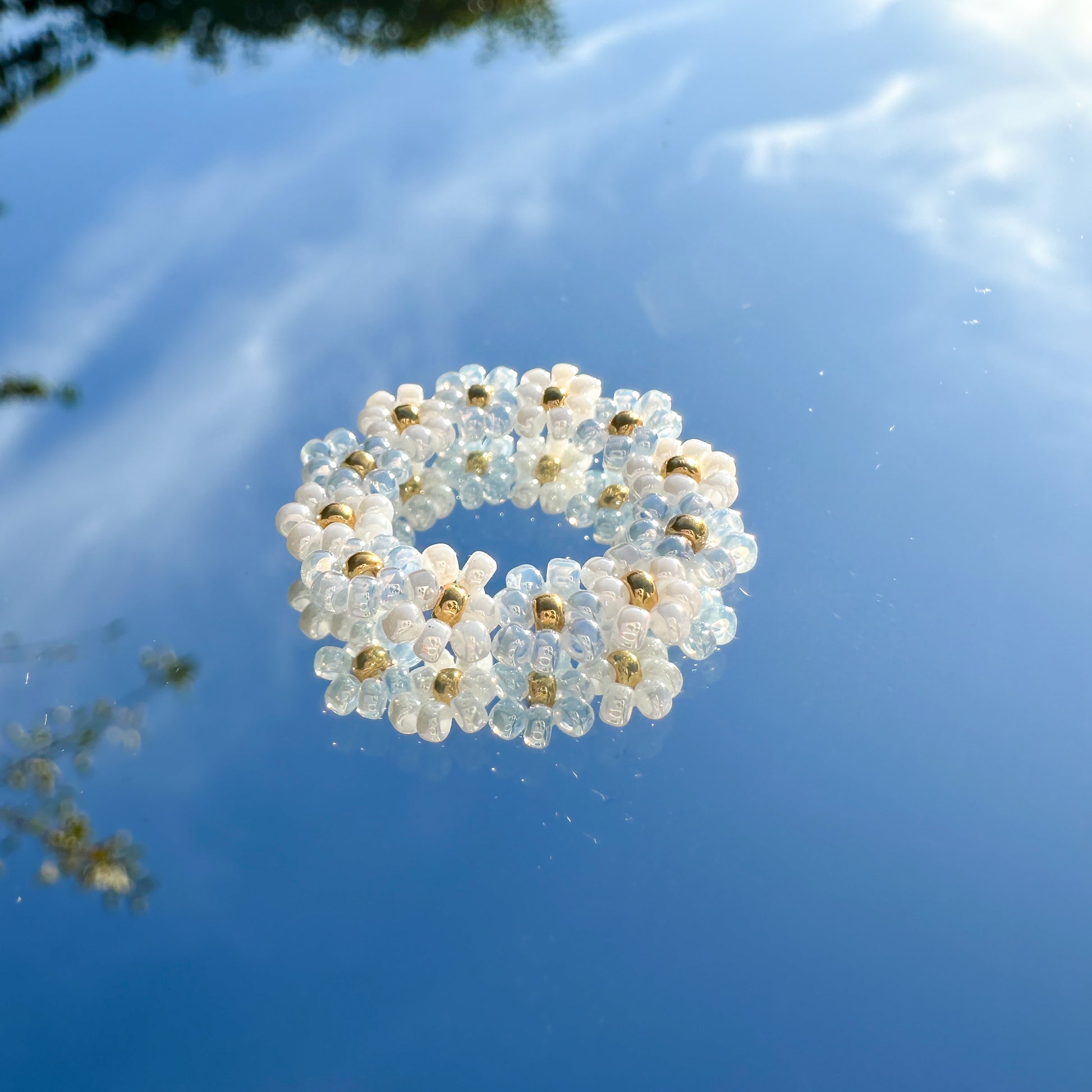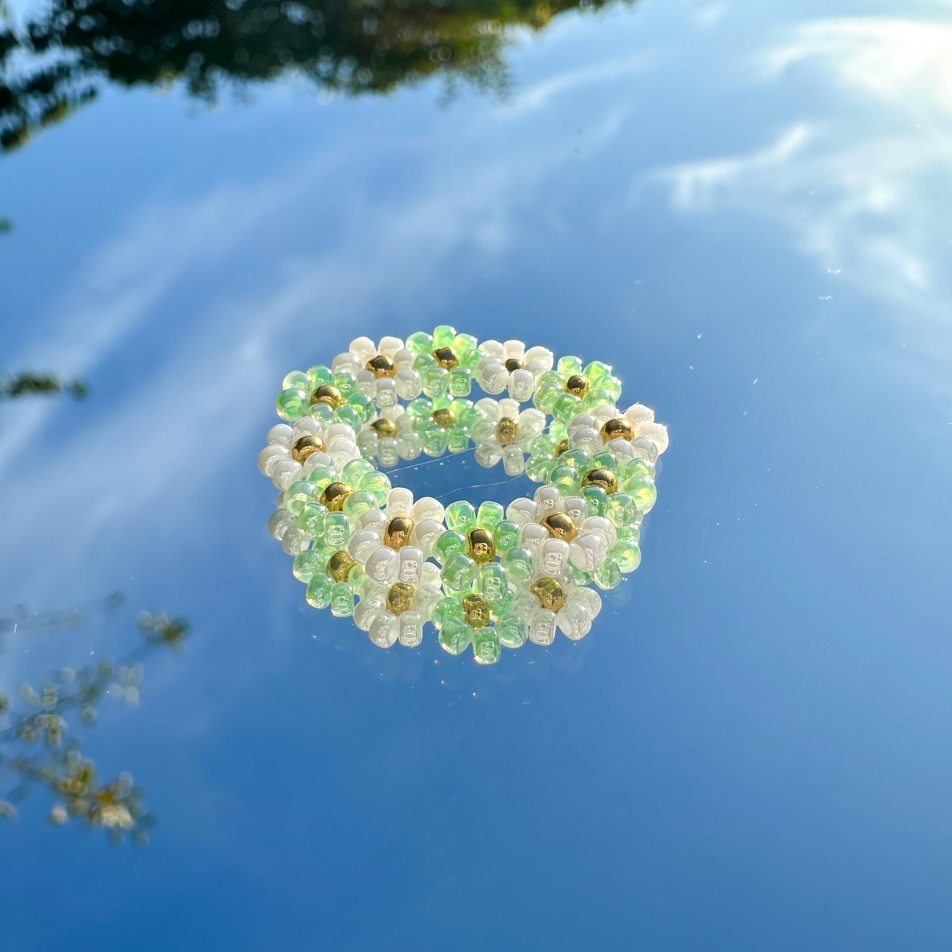 Blumenring "Linnea" aus bunten und weißen Glasperlen
