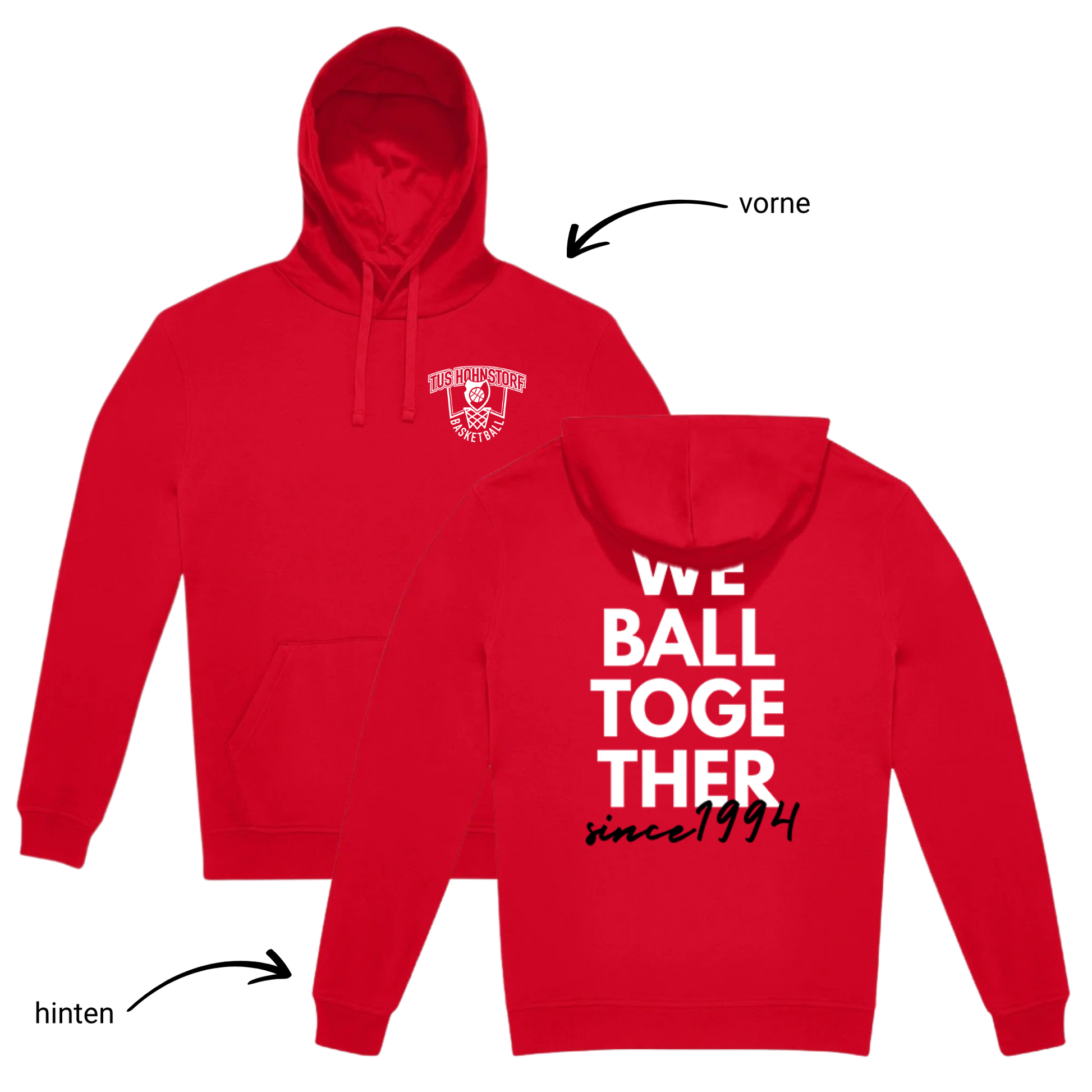 Design: vorne kleines gedrucktes Logo auf der linken Brust, hinten großer Druck
