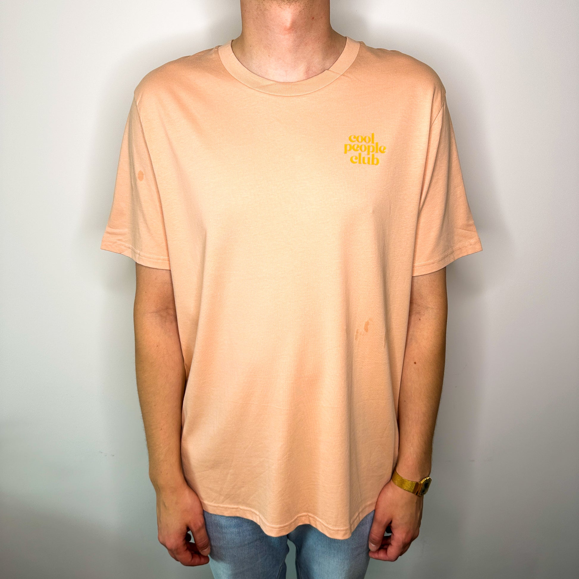 Unisex T-Shirt in Apricot mit Backprint „Holy Aperoli“