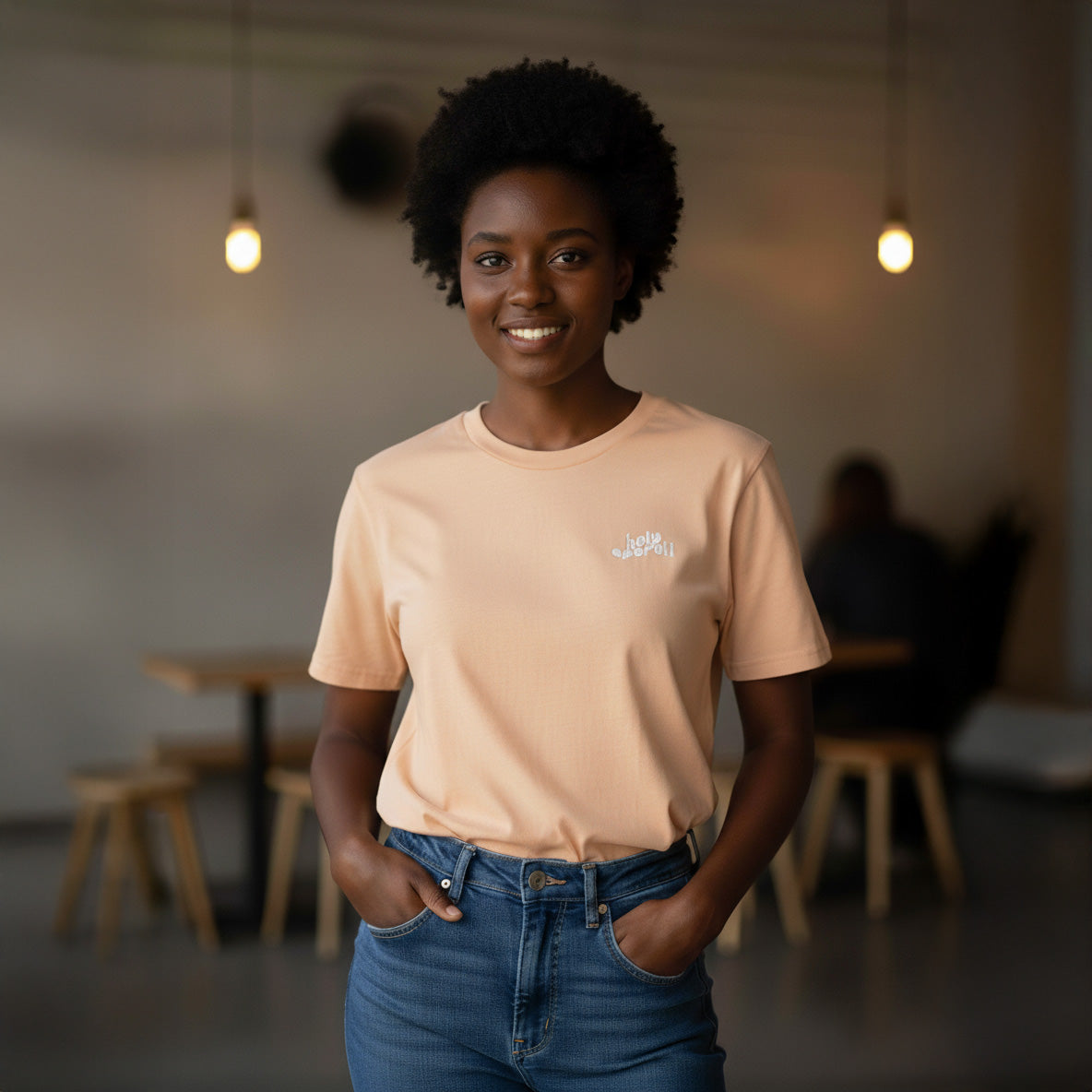 Unisex T-Shirt in Apricot mit Stick „Holy Aperoli“