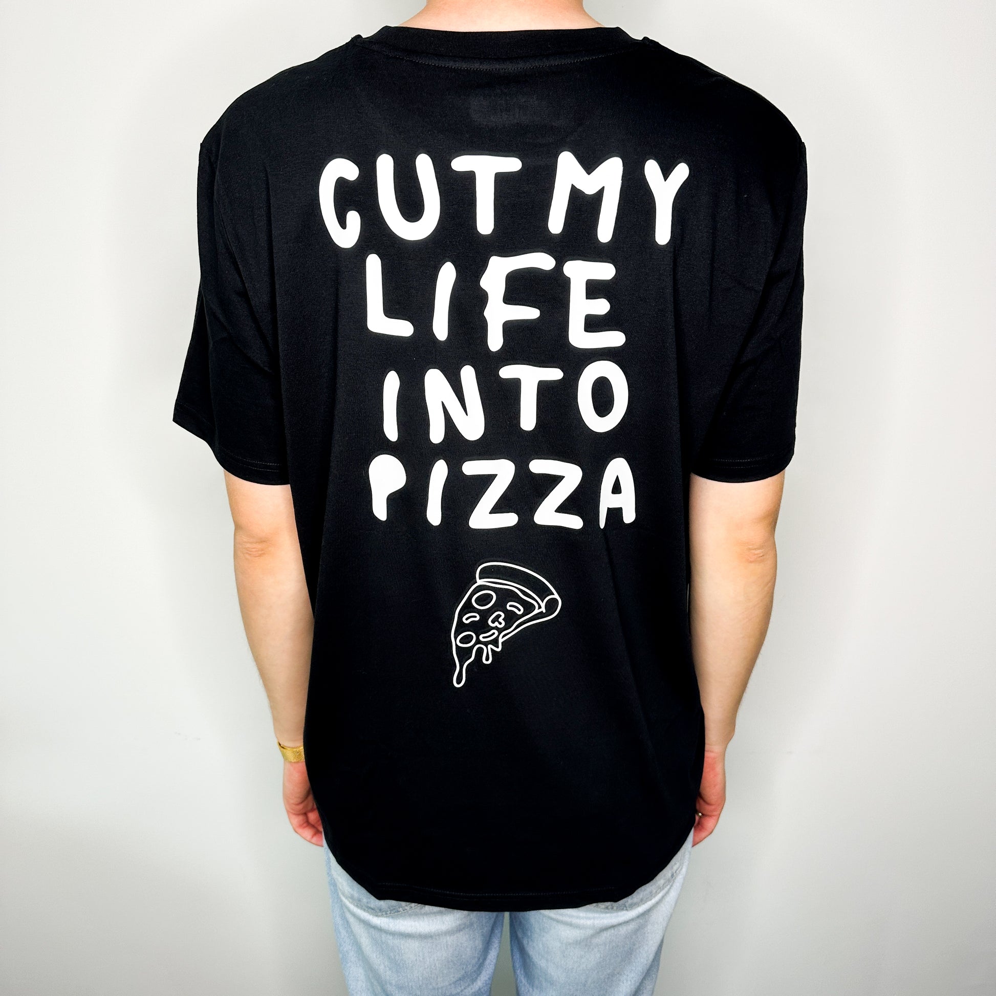 Unisex T-Shirt in Schwarz mit Backprint „Cut my life into Pizza“